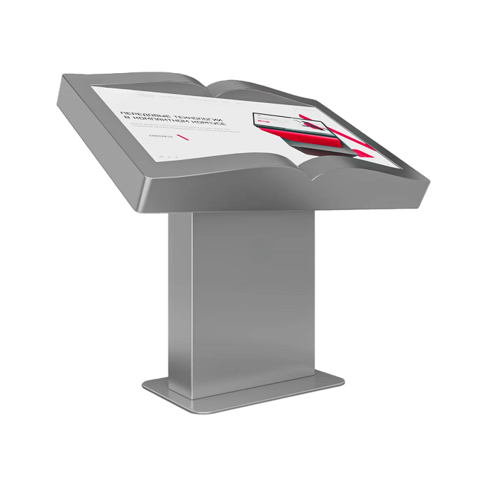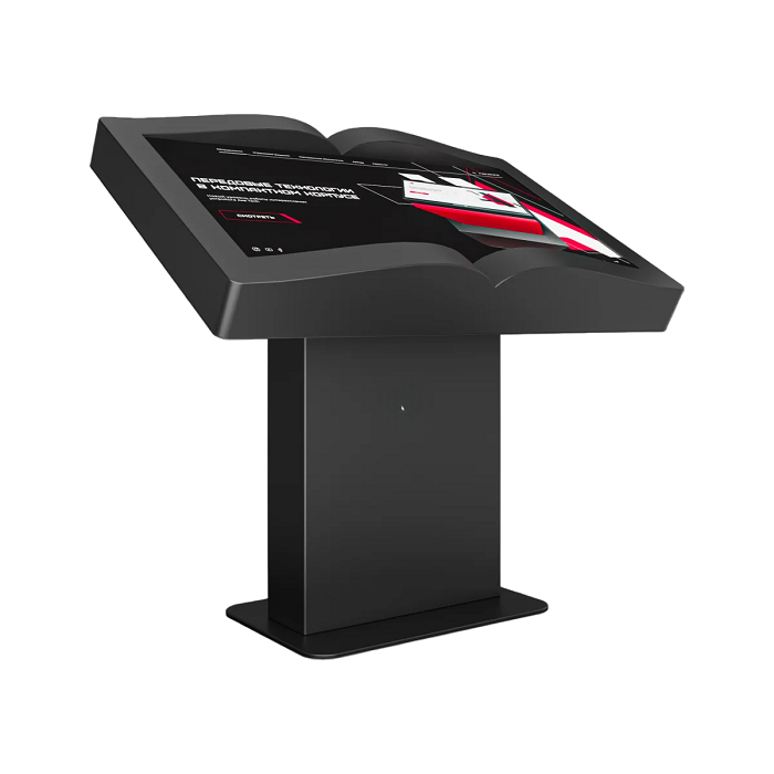 Интерактивный стол Book 32” – устройство, форм-фактор которого реализован в форме раскрытой книги. Механическая регулировка дисплея позволит настроить пользователям оптимальный угол для взаимодействия с программным обеспечением. Оборудование может быть дополнено информационным приложением или интерактивной книгой с эффектом пролистывания страниц.