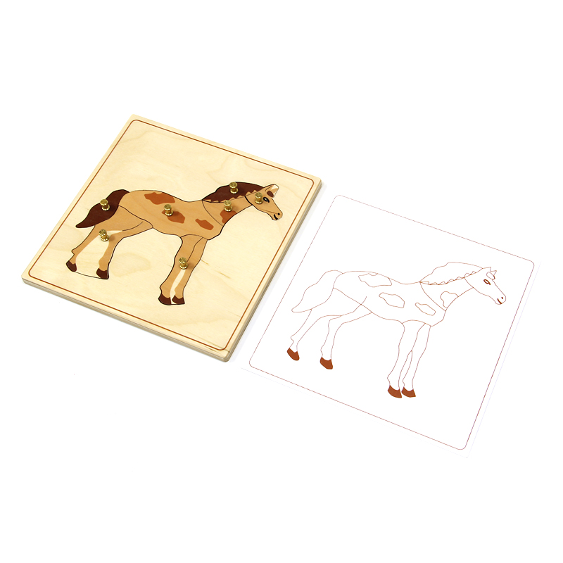 Материал предназначен для изучения строения лошади. Яркий наглядный материал побуждает ребенка к многократному составлению целого из частей, а также ребенок выкладывает на контур части лошади, сопоставляет их, проговаривая названия. Упражнение способствует развитию речи, формированию целостного восприятия формы, способствует увеличению словарного запаса.